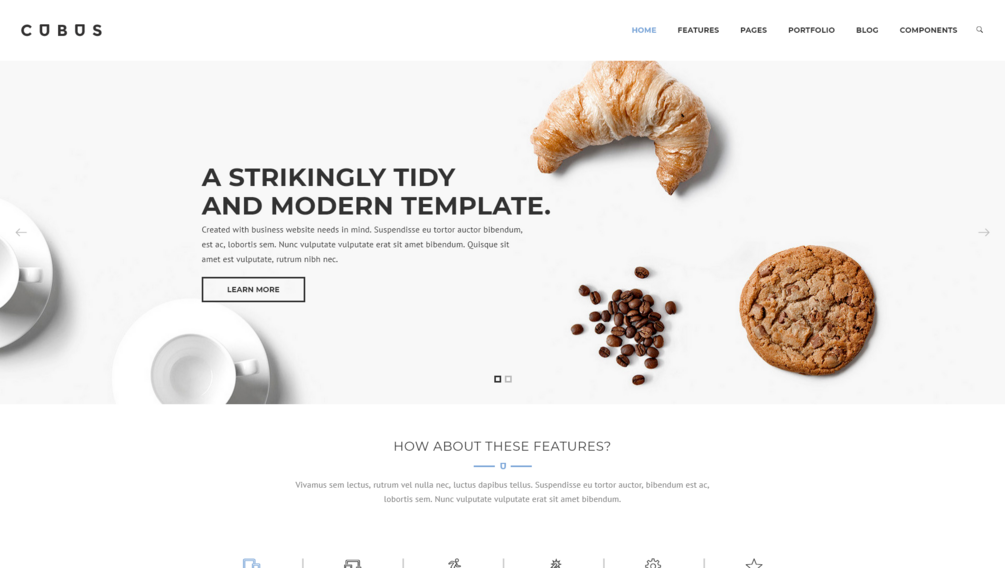 Cubus - is a creative HTML5 template with amazing flexibility. Based on popular Bootstrap framework it is fully responsive and compatible with all mobile devices. Perfectly suits for creative agencies, freelancers, photographers, personal portfolio.